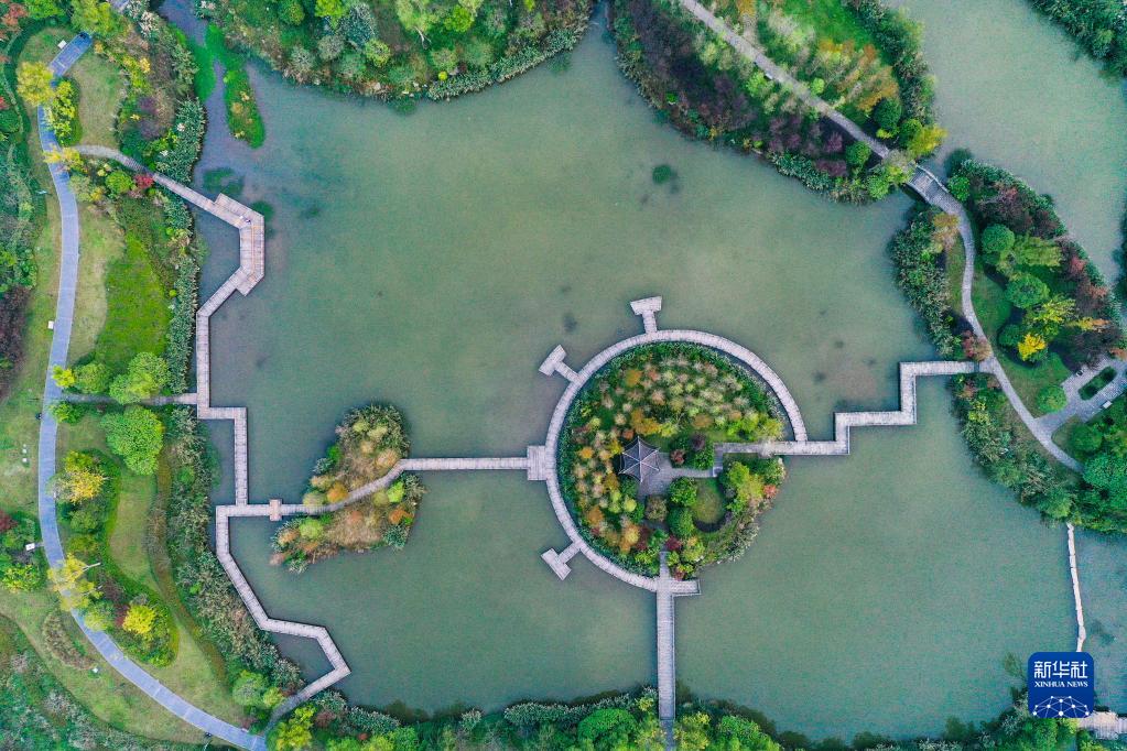 11月7日拍攝的重慶市梁平區(qū)雙桂湖國家濕地公園一帶景象(無人機照片)。