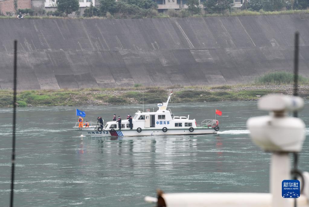 11月9日,在四川省宜賓市敘州區,演練人員開展江面水體采樣工作。