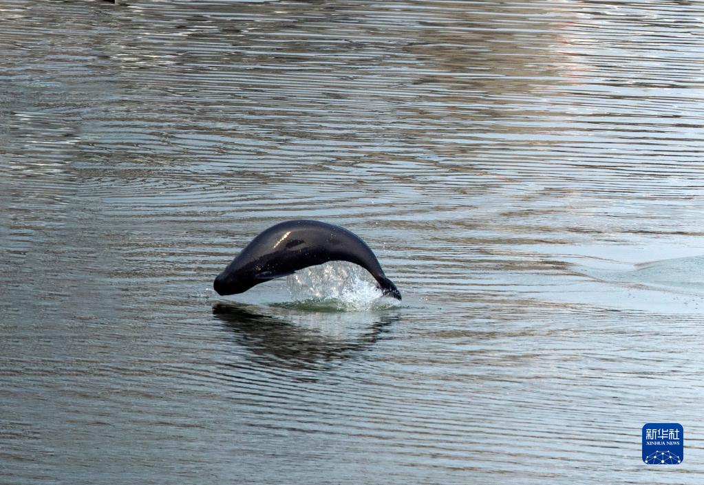 這是11月8日拍攝的長江葛洲壩下游水域中的江豚。新華社發(文振效 攝)