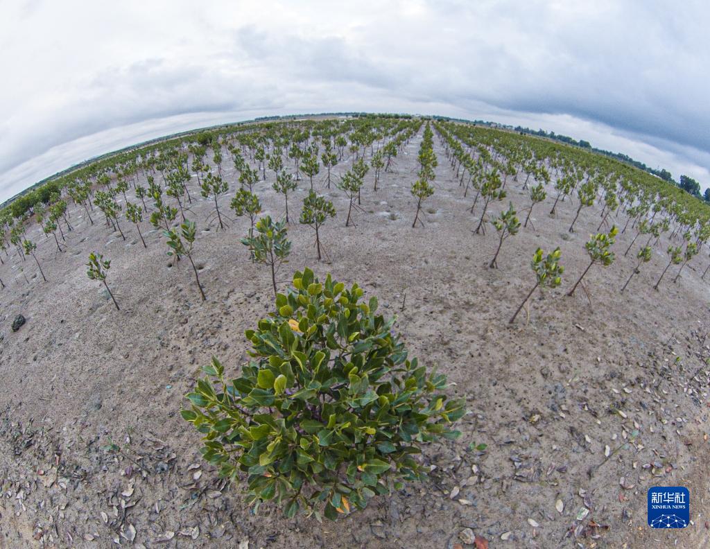 11月8日在海南省儋州市拍攝的新英鹽場紅樹林恢復造林工程(全景照片)。新華社記者 蒲曉旭 攝
