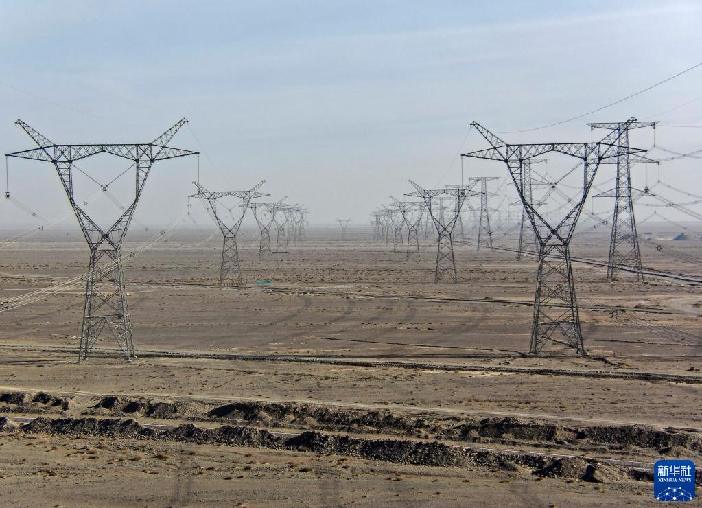 這是11月9日拍攝的新疆哈密至甘肅敦煌750千伏輸電線路(無人機照片)。