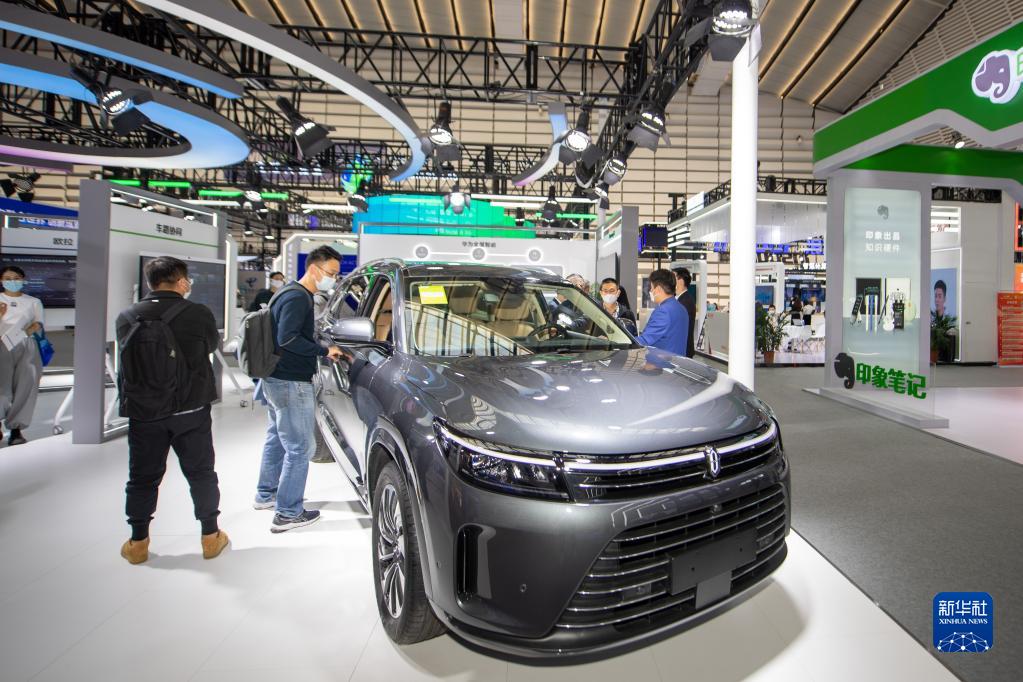 11月10日,觀眾參觀華為公司展臺的汽車。