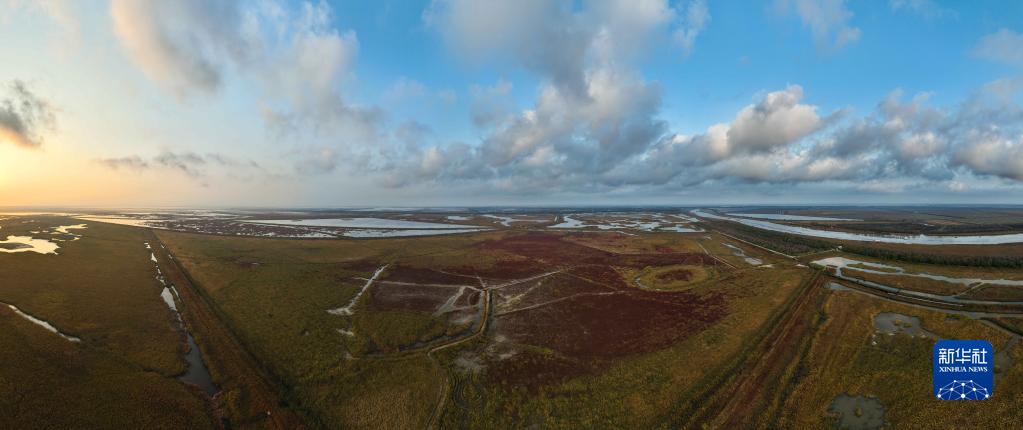 鹽城濕地珍禽國(guó)家級(jí)自然保護(hù)區(qū)景色(11月8日攝,無(wú)人機(jī)照片)。