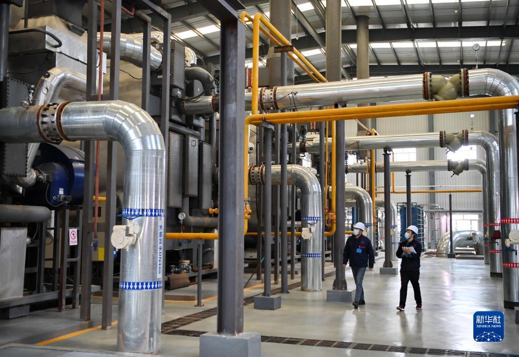 11月10日,在石家莊市一家供熱企業,工作人員在運行車間內巡查。