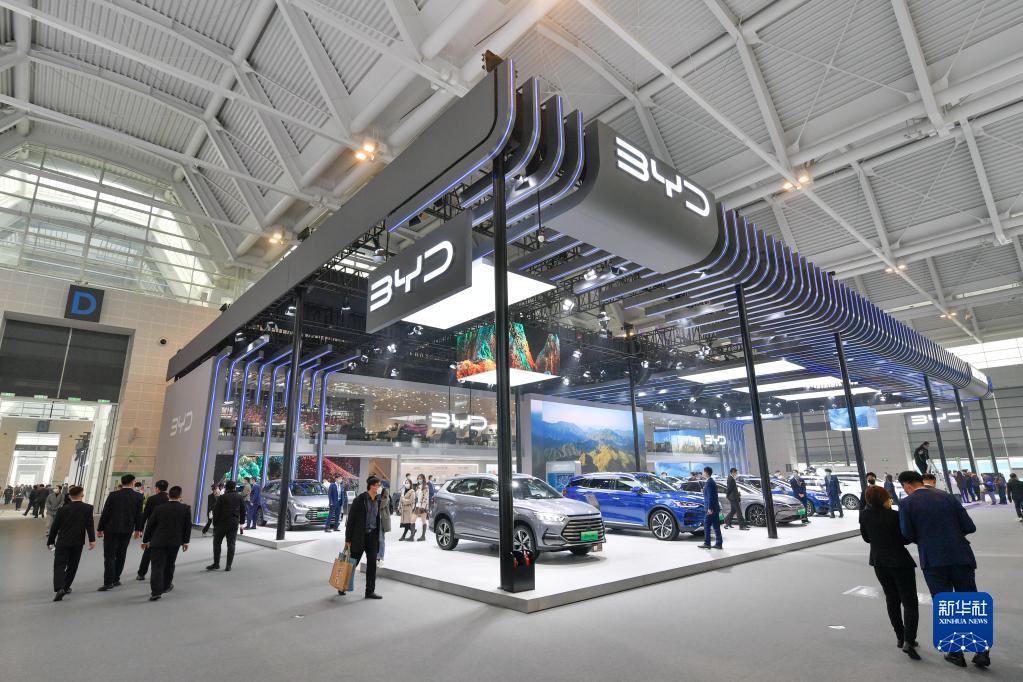 這是11月10日在2022中國(天津)國際汽車展覽會上拍攝的比亞迪汽車展臺。