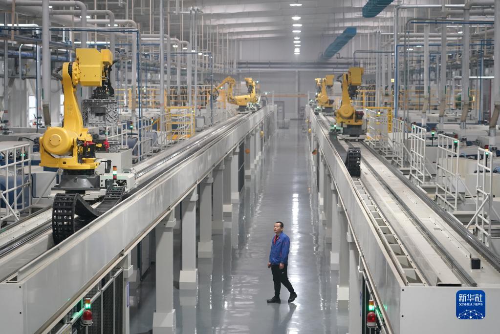 11月9日,工人在位于西安高新區的法士特高智新工廠項目車間內查看零件數字化生產線運行狀況。
