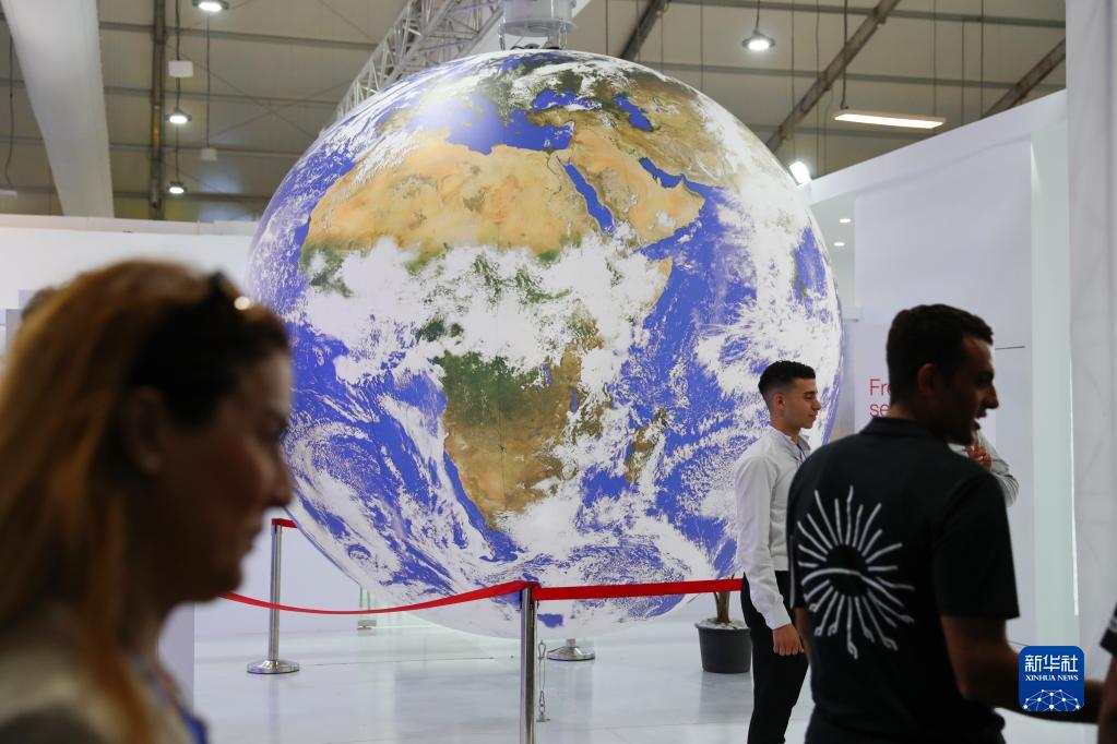 11月10日,在埃及沙姆沙伊赫的聯合國氣候變化大會展區內,參會者走過一個地球模型。