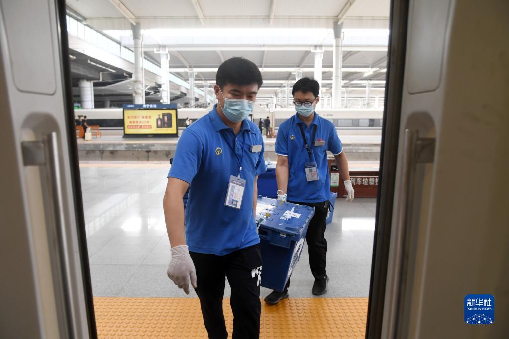 11月11日,中鐵快運南寧東站營業部工作人員在南寧東站將快運件搬上車。