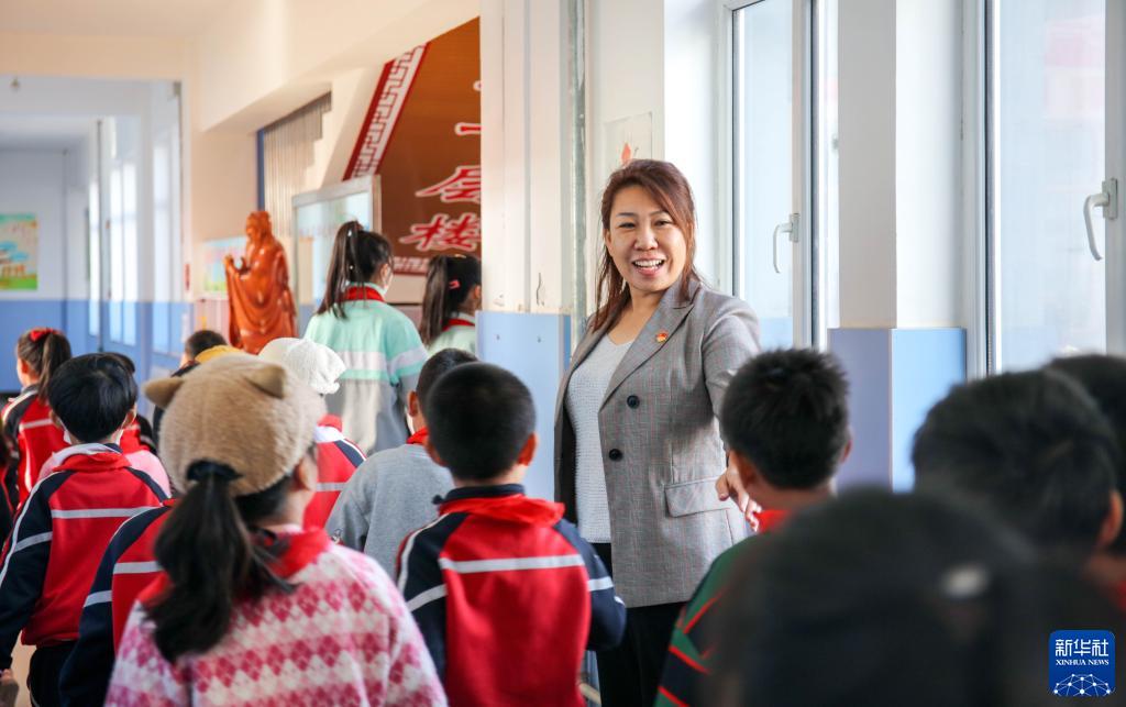 11月8日,在通遼市科爾沁區紅星中心小學,趙穎慧引導學生們去做課間操。