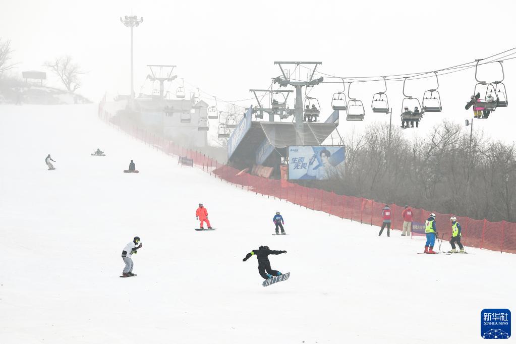 11月11日,滑雪愛好者在廟香山滑雪場滑雪。