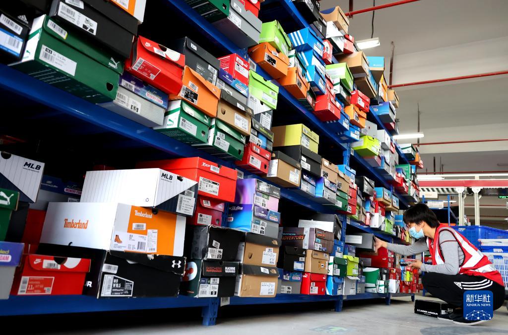 11月11日,工人在江蘇省連云港市海州區天馬電商產業園按照訂單查找貨品。