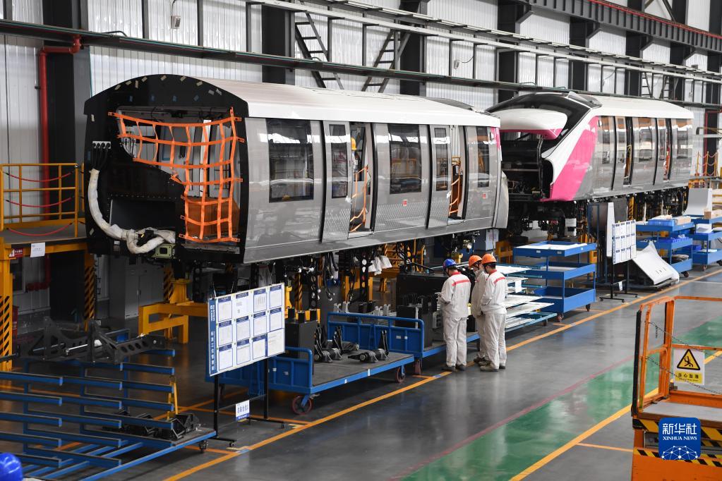 11月9日,中車浦鎮阿爾斯通運輸系統有限公司工人在軌道交通車輛生產線上工作。