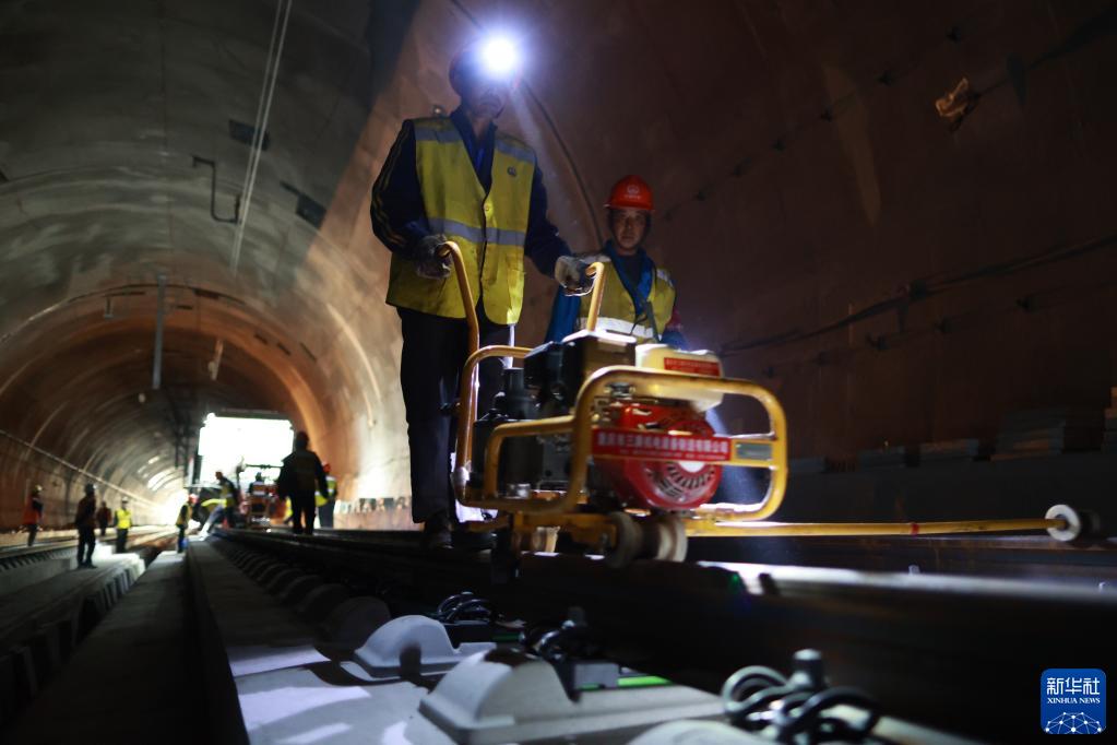 11月11日,中鐵一局員工在貴南高鐵貴州獨山段一條隧道內施工。