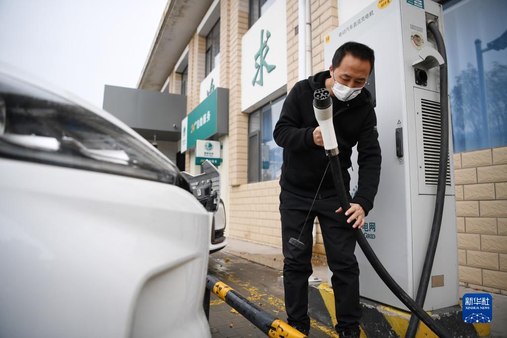 一名車主在國網寧夏電力石嘴山供電公司長勝供電所充電樁為車輛充電(11月11日攝)。