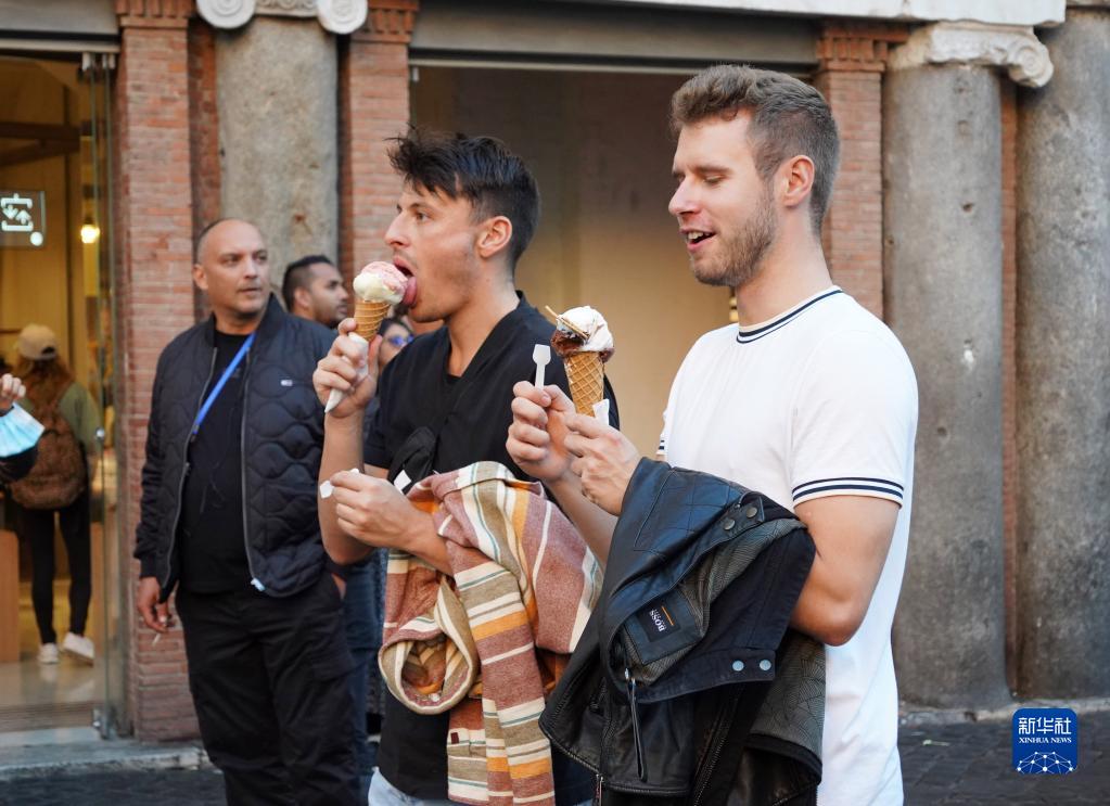 11月11日,人們在意大利羅馬吃冰淇淋。