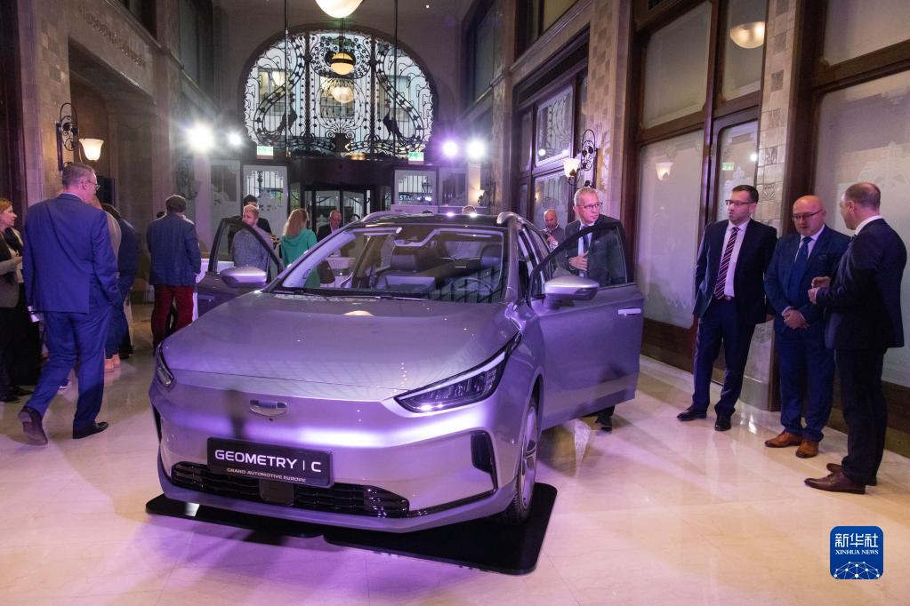 這是11月4日在匈牙利布達佩斯拍攝的吉利幾何C型電動汽車。
