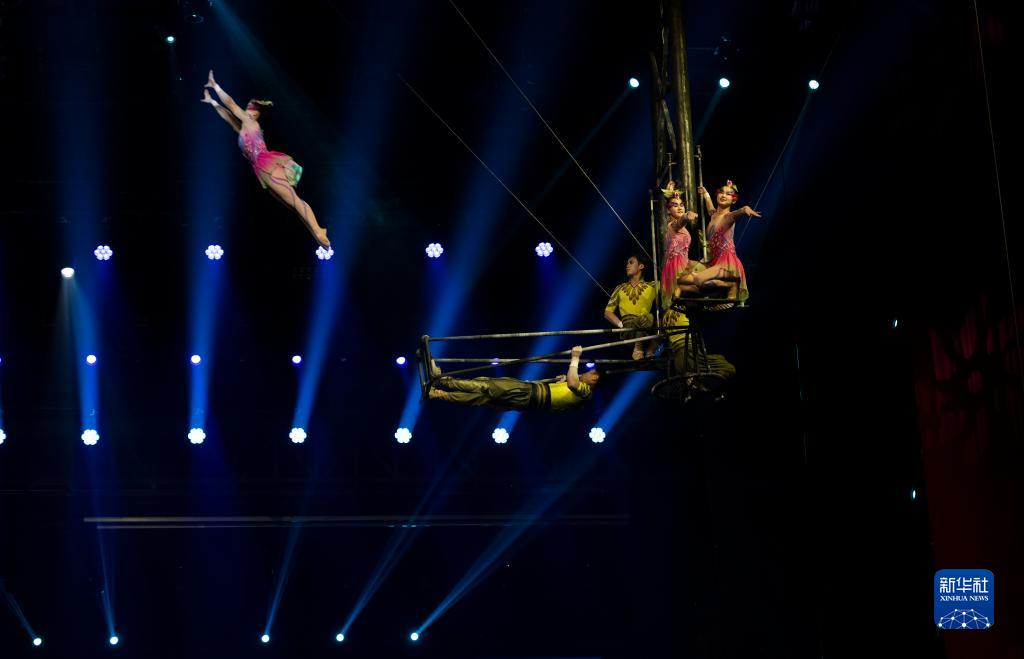11月9日,演員在節(jié)目《長(zhǎng)空嘯——浪橋飛人》中表演。