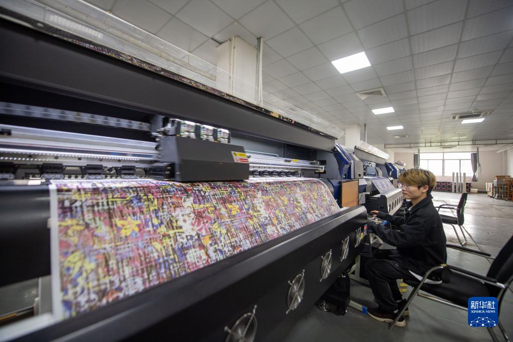 11月2日,工作人員在柯橋區(qū)的浙江大樹紡織科技有限公司的印花車間內(nèi)工作。