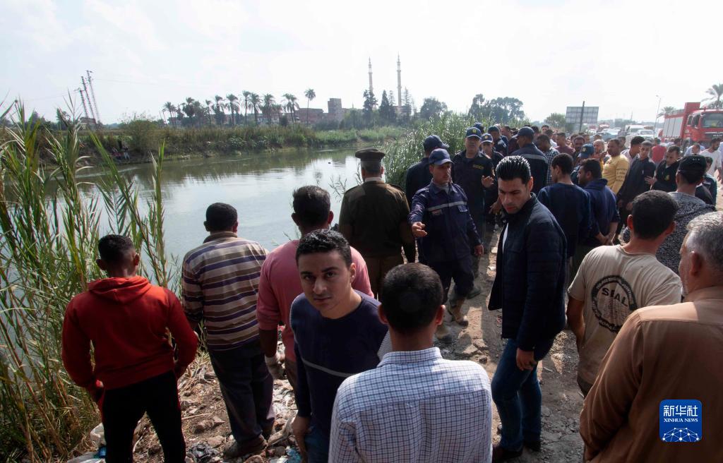 11月12日,人們聚集在埃及達卡利亞省的小巴墜河事故現場。