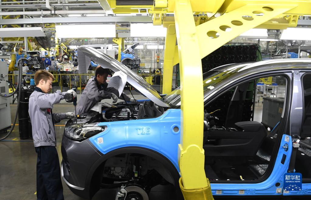 11月12日,工人在安慶一家汽車企業生產線上工作。