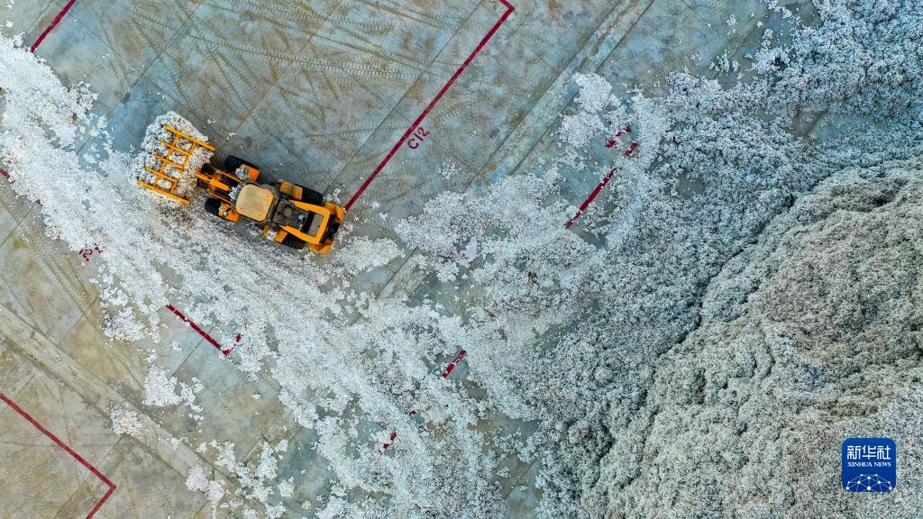 新疆沙雅縣一處棉花收購企業在進行生產(11月11日攝,無人機照片)。