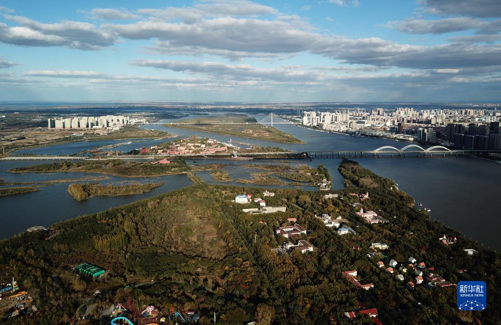 太陽島風景區和附近濕地景色(10月4日攝,無人機照片)。
