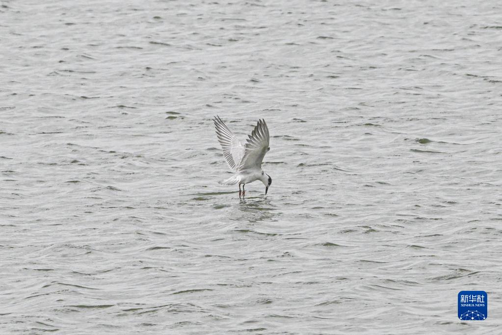 11月12日,須浮鷗在海口市美蘭區(qū)一處濕地覓食。