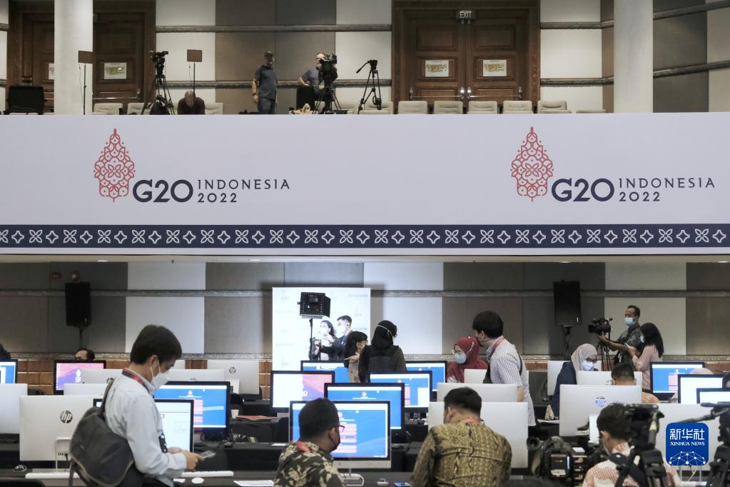 11月13日,媒體工作者在印度尼西亞巴厘島的峰會媒體中心工作。