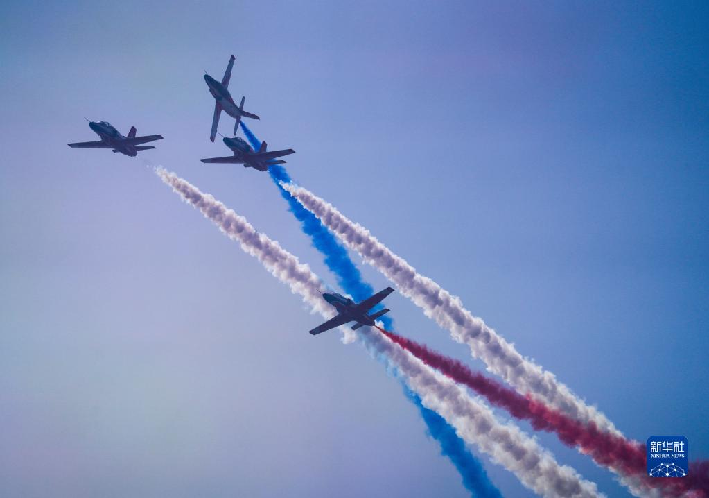 11月13日,第十四屆中國航展閉幕當天,空軍航空大學“紅鷹”飛行表演隊進行飛行表演。