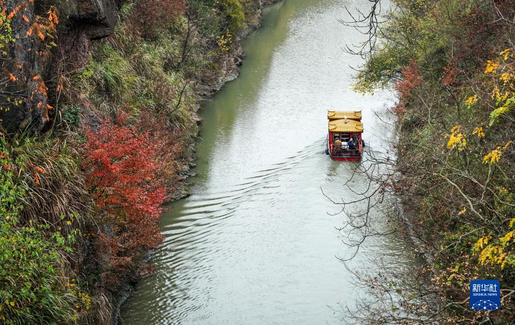 初冬時節(jié),位于南京市溧水區(qū)的胭脂河兩岸奇石怪巖,色彩斑斕。新華社記者 楊磊 攝