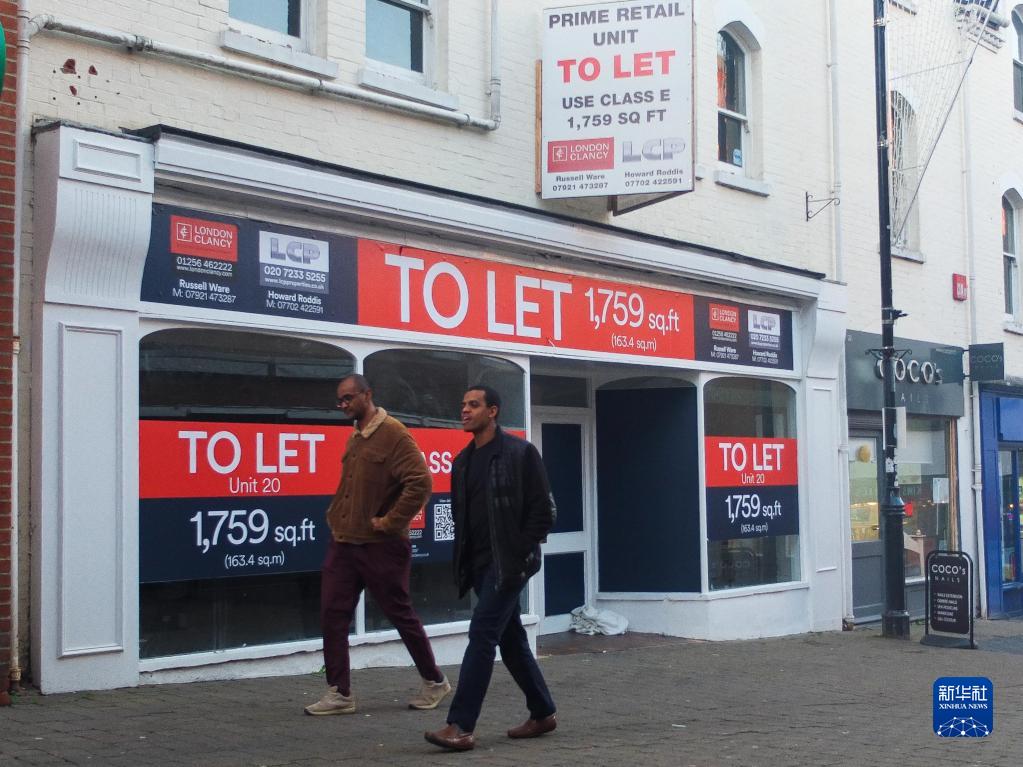 11月13日,人們走過英國貝辛斯托克街頭一家關門招租的店鋪。
