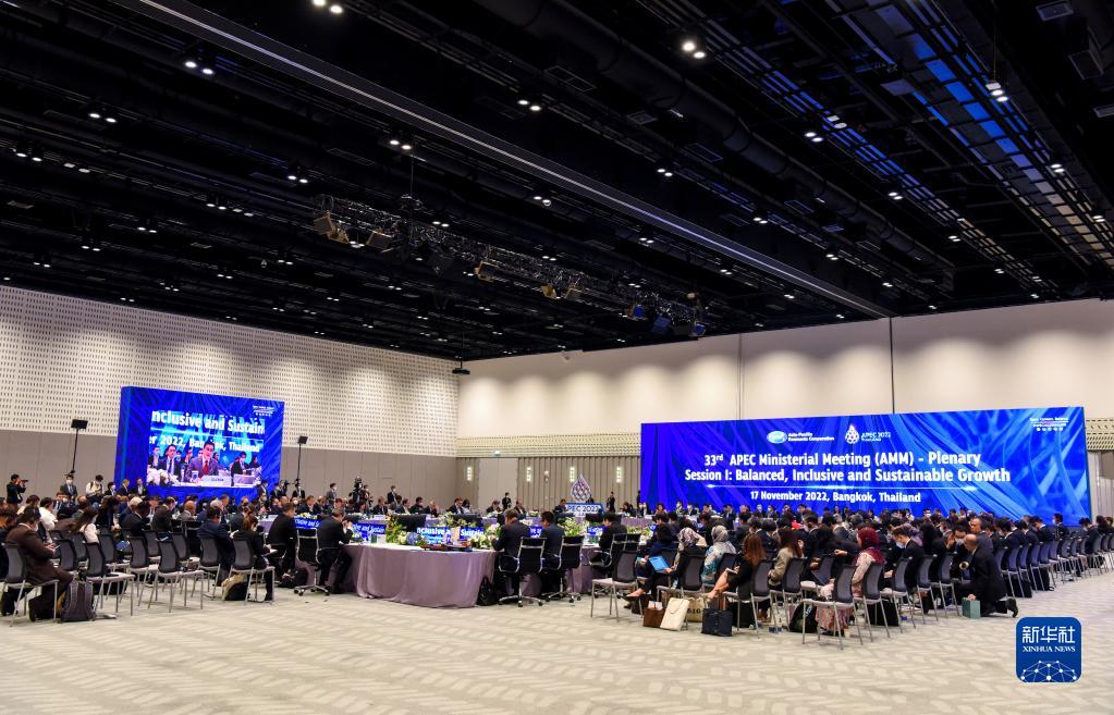 這是11月17日在泰國曼谷拍攝的亞太經(jīng)合組織(APEC)第三十三屆部長級會議現(xiàn)場。