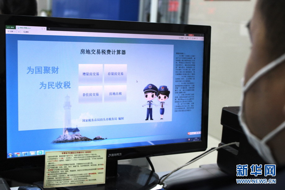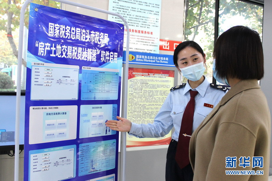 11月16日,國家稅務(wù)總局泊頭市稅務(wù)局工作人員運用“房產(chǎn)土地交易稅費計算器”軟件進行“一鍵計稅”。新華網(wǎng)發(fā)(馮悅 攝)