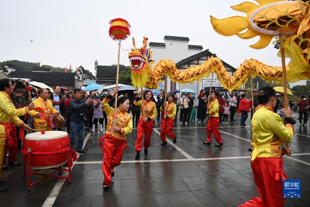 11月18日,和孚鎮荻港村村民在進行舞龍表演。