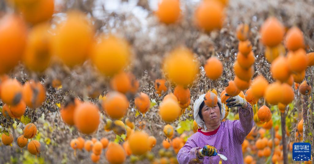 11月18日,山東省鄒平市孫鎮(zhèn)懷家村農(nóng)民在瓜蔞基地采收瓜蔞種。