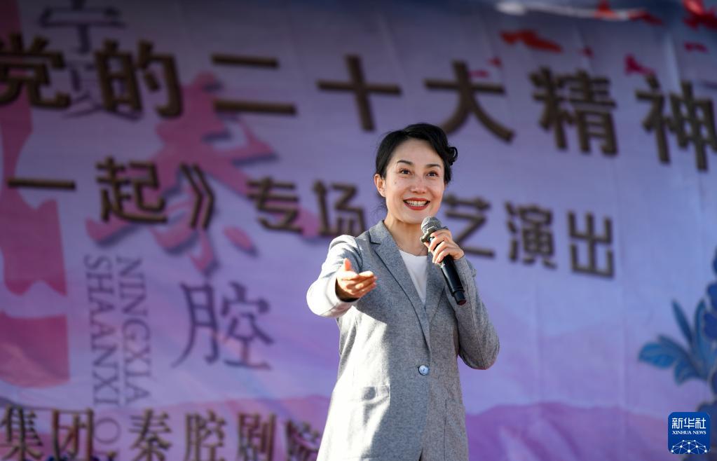 侯艷是黨的二十大代表,寧夏演藝集團秦腔劇院黨支部書記,國家一級演員。近年來,她所在的寧夏秦腔劇院把增強群眾的文化獲得感和幸福感作為重要目標,大力加強送戲下鄉力度,每年為基層演出300余場。