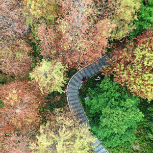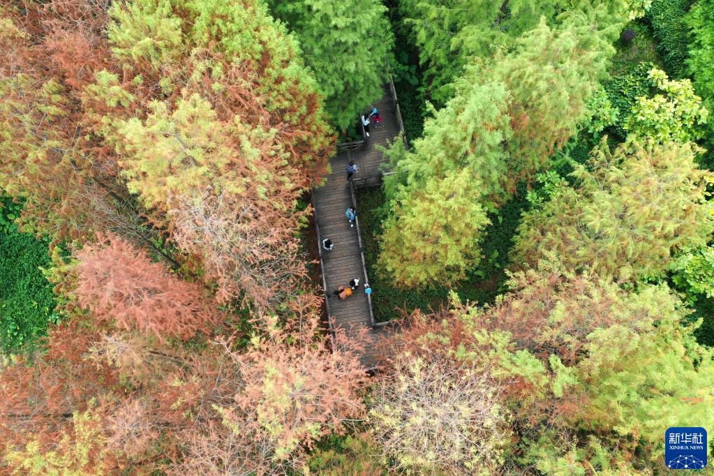 初冬時節,廣西南寧市多個公園的杉樹樹葉日漸變紅,分外靚麗。