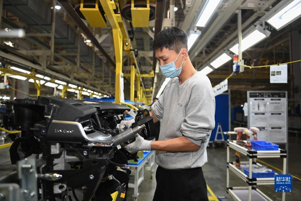 11月19日,工人在領克汽車寧波梅山工廠的總裝車間作業。