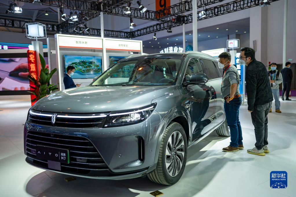 這是11月19日在南博會現場拍攝的一款新能源汽車。
