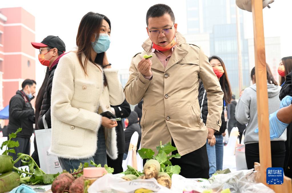 在天津市西青區辛口鎮第十五屆沙窩蘿卜文化旅游節上,參觀者在品嘗沙窩蘿卜(11月18日攝)。