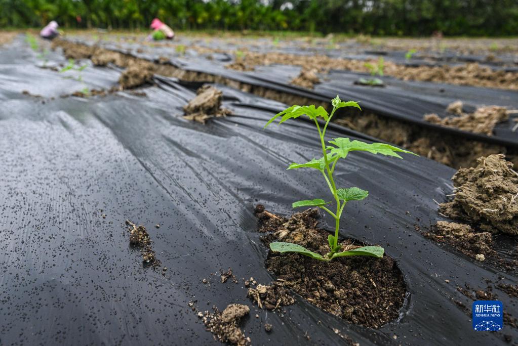 11月20日在屯昌縣楓木鎮(zhèn)拍攝的農(nóng)民剛種下的楓木苦瓜苗。