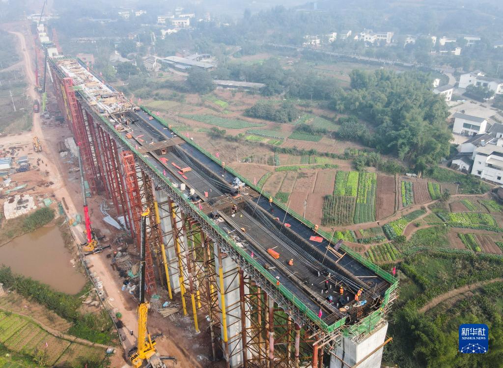 這是11月19日拍攝的重慶城軌快線璧銅線璧山段施工作業現場(無人機照片)。