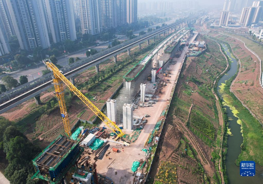 這是11月19日拍攝的重慶軌道交通27號線璧山段施工作業現場(無人機照片)。