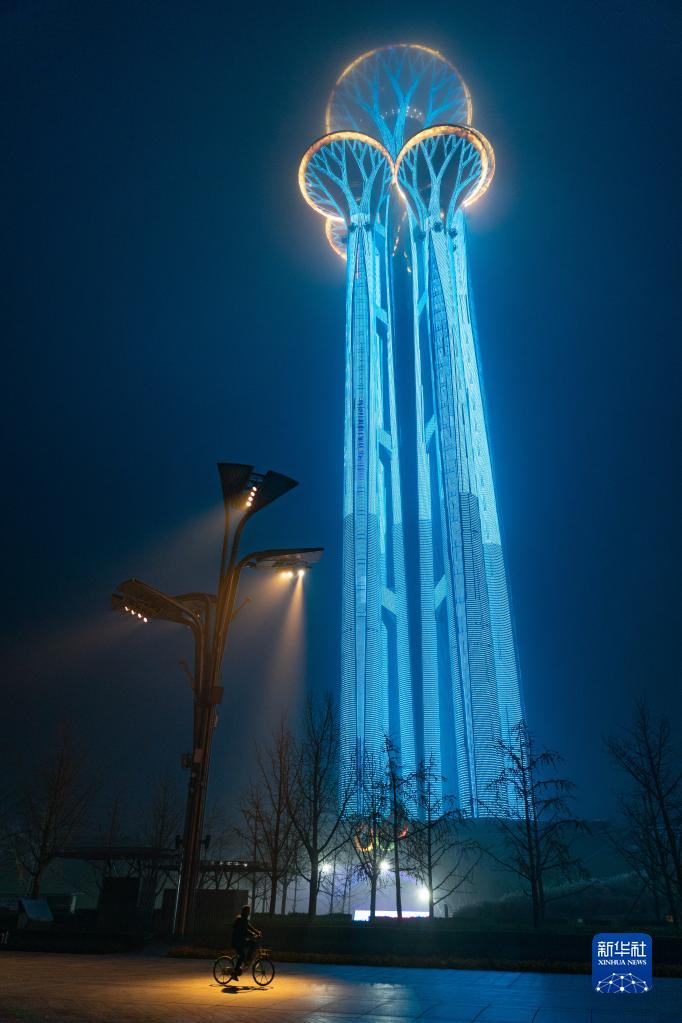 11月20日,北京奧林匹克塔為世界兒童日亮燈。