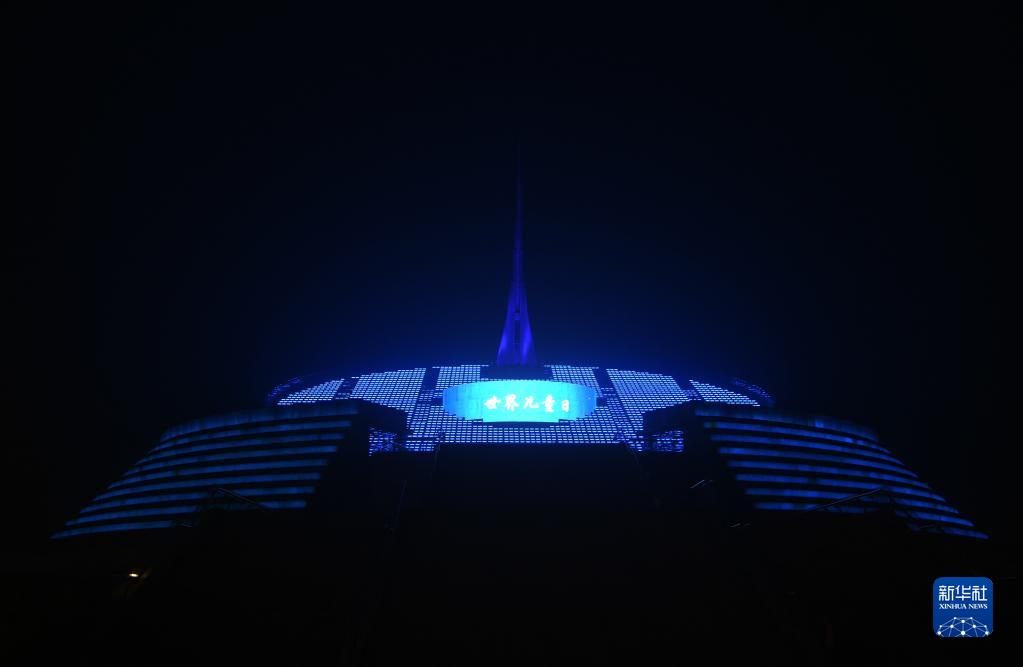 當(dāng)日是世界兒童日,一些地區(qū)的地標(biāo)建筑點(diǎn)亮象征兒童友好的藍(lán)色燈光。