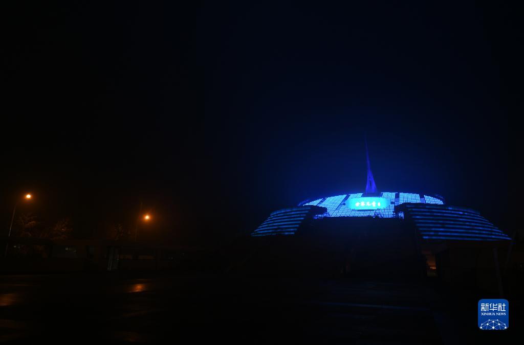 當日是世界兒童日,一些地區的地標建筑點亮象征兒童友好的藍色燈光。