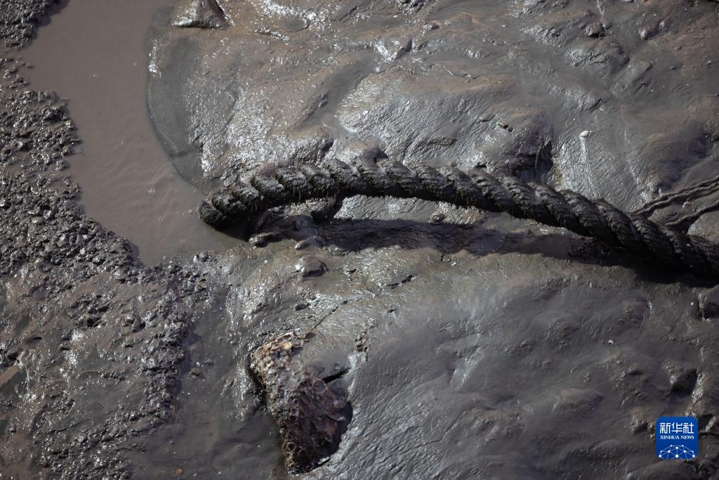 11月21日清晨拍攝的露出水面的古船船體局部。