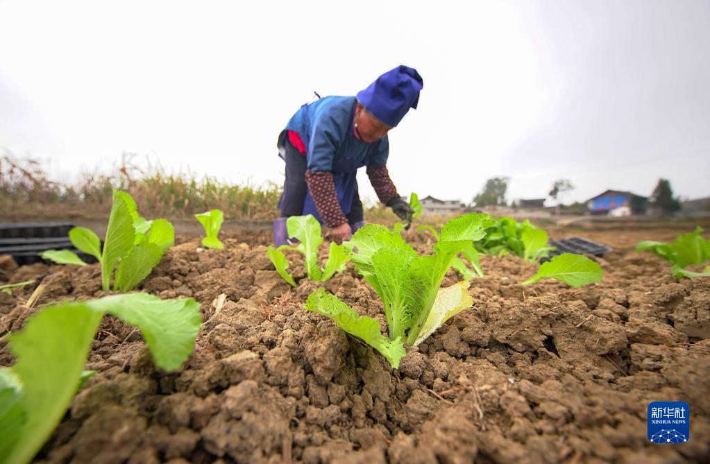 11月21日,貴州省黔東南苗族侗族自治州丹寨縣揚武鎮密告村村民在田間種菜。
