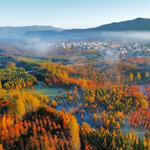 近日,云南省昆明市盤龍區滇源街道甸尾村水杉濕地的水杉林色彩艷麗,景色如畫。