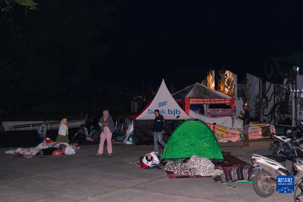 11月22日凌晨,在印度尼西亞西爪哇省展玉地區,受地震影響的人們在戶外休息。
